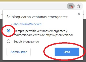 Atención, debes activar los POPup